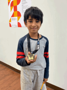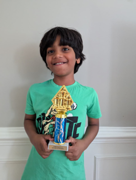 ”Raana is an active and creative boy who is excited to be starting 4th grade. He loves playing with Legos, spending hours building everything from tall towers to imaginary worlds, always using his creativity to make something new. Raana also enjoys playing soccer with his friends, where he can run around, have fun, and be part of a team. In quieter moments, he likes solving the Rubik’s Cube and playing chess—both games that challenge his mind and help him think ahead. Raana gets a lot of encouragement from his parents and mentor, who always support his interests and motivate him to keep learning and doing his best. Their support has helped him grow more confident and excited to try new things. Special thanks to Chess Coach Harshu!.”