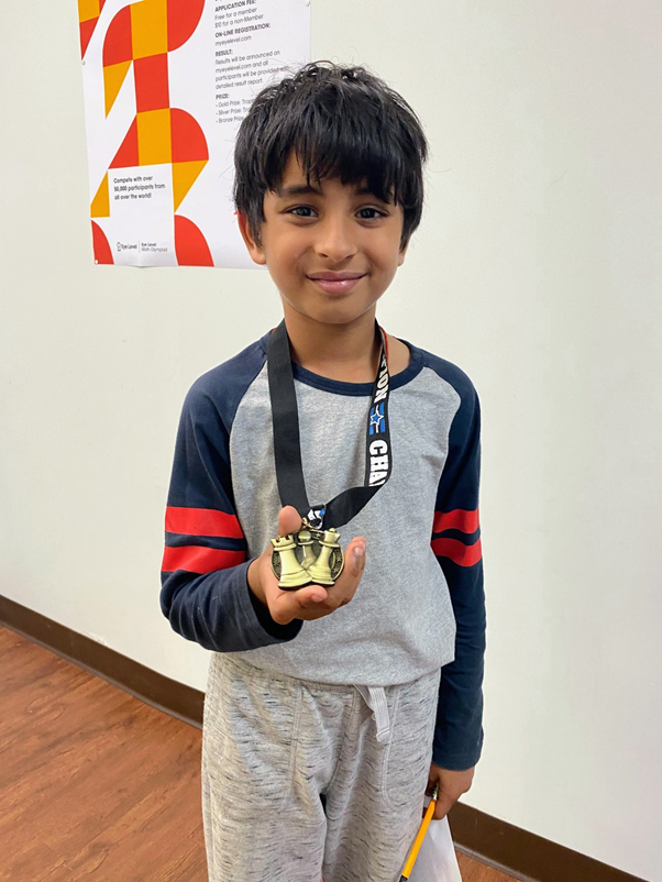 “Nathan, a 4th grader, was introduced to the world of chess by his grandfather, who has encouraged him throughout his journey. What began as just another family board game soon became a passion. Nathan looks forward to playing chess with Mr. Hrishikesh and his peers, as the sessions are always engaging and fun. He shows great curiosity in learning new strategies and enjoys solving chess puzzles. In his free time, Nathan loves building with Legos, playing board games, or enjoying a game of football with his father. His favorite subject in school is math, and he also has an interest in playing the piano.We are truly grateful to Mr. Hrishikesh for his excellent mentorship and patience in nurturing Nathan’s love for chess.”