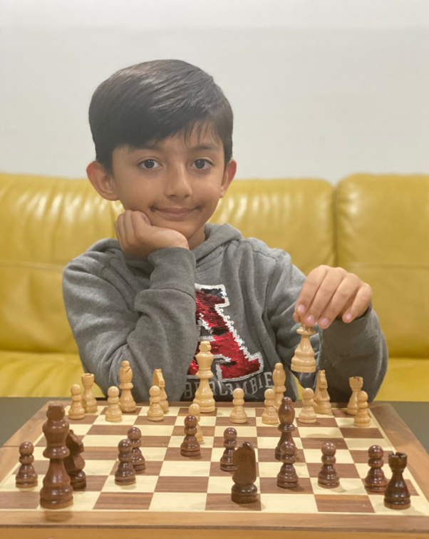 “Arnav is 10 years old and is going to 5th grade. Ever since his uncle introduced him to chess, Arnav was hooked. He has had a huge interest in chess for a long time and regularly competes in tournaments and contests. Along with chess, he loves painting, swimming, and soccer. Arnav is very passionate about art, engineering, and math. We want to thank PCA & Coach Sahil Batra for inspiring Arnav and helping him develop his skills in chess. We hope Arnav keeps up the good work.”