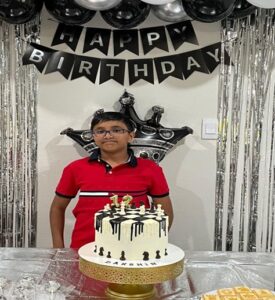 “Meet Dakshin. Dakshin is a bright 12-year-old seventh grader from Dallas, Tx, with a passion for chess. With a strategic mind and a love for the game, Dakshin spends hours perfecting their moves and outmaneuvering opponents. Dakshin has a keen ability to concentrate and think critically. He enjoys puzzles and brain teasers. Thank you to Mr. Jeet for being an amazing coach and mentor.”