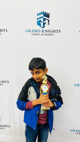 Joshnav is a good learner and shows great interest in understanding conceptual topics in chess. Apart from chess, he enjoys arts and crafts. He excels not only in his school academics but also in various other activities such as art, chess, and swimming. We are very happy to see Joshnav’s steady improvement in chess, with his growth graph rising day by day. Keep looking forward to new challenges and continue climbing step by step toward success.